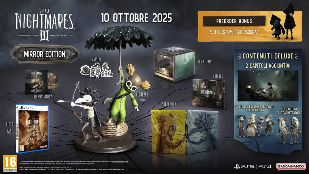 Con Little Nightmares III Mirror’s Edition, scopri un nuovo capitolo della saga che ha ridefinito il genere horror d’atmosfera. Perfetto per chi cerca un titolo emozionante, curato nei dettagli e da collezione. Affronta le tue paure. non da solo.