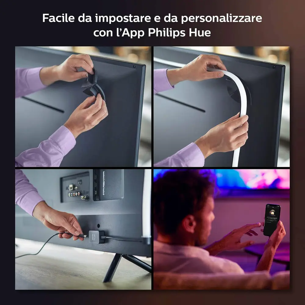 Con la Philips Hue Play Gradient Lightstrip puoi creare un’illuminazione surround che segue in tempo reale i colori del tuo schermo, aumentando il coinvolgimento e riducendo l’affaticamento visivo. Perfetta per chi desidera un setup moderno, smart e completamente personalizzabile, è la scelta ideale per migliorare in modo semplice e spettacolare qualsiasi TV compatibile.