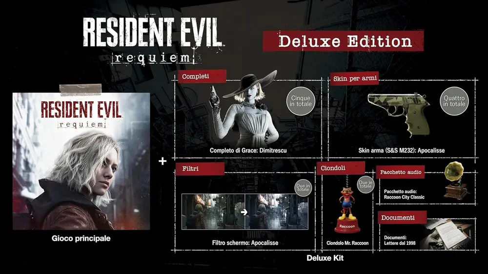 Scegliere la Deluxe Edition di Resident Evil Requiem significa assicurarsi l’esperienza definitiva di un titolo destinato a segnare un’epoca. Che tu sia un veterano della serie o un nuovo sopravvissuto, questa edizione offre il perfetto equilibrio tra valore collezionistico e innovazione tecnologica. Prenota ora per garantirti la consegna al Day One (27/02/2026) e affrontare le tue paure con il massimo dello stile.
