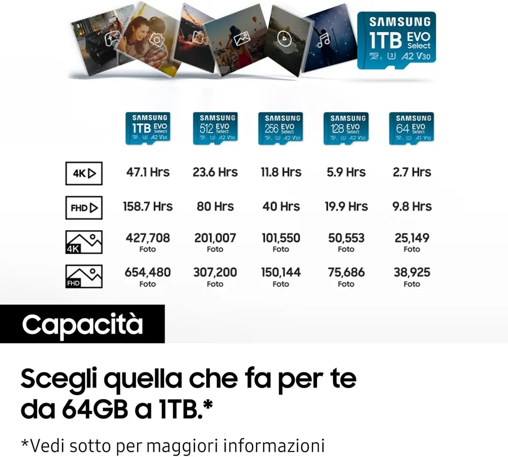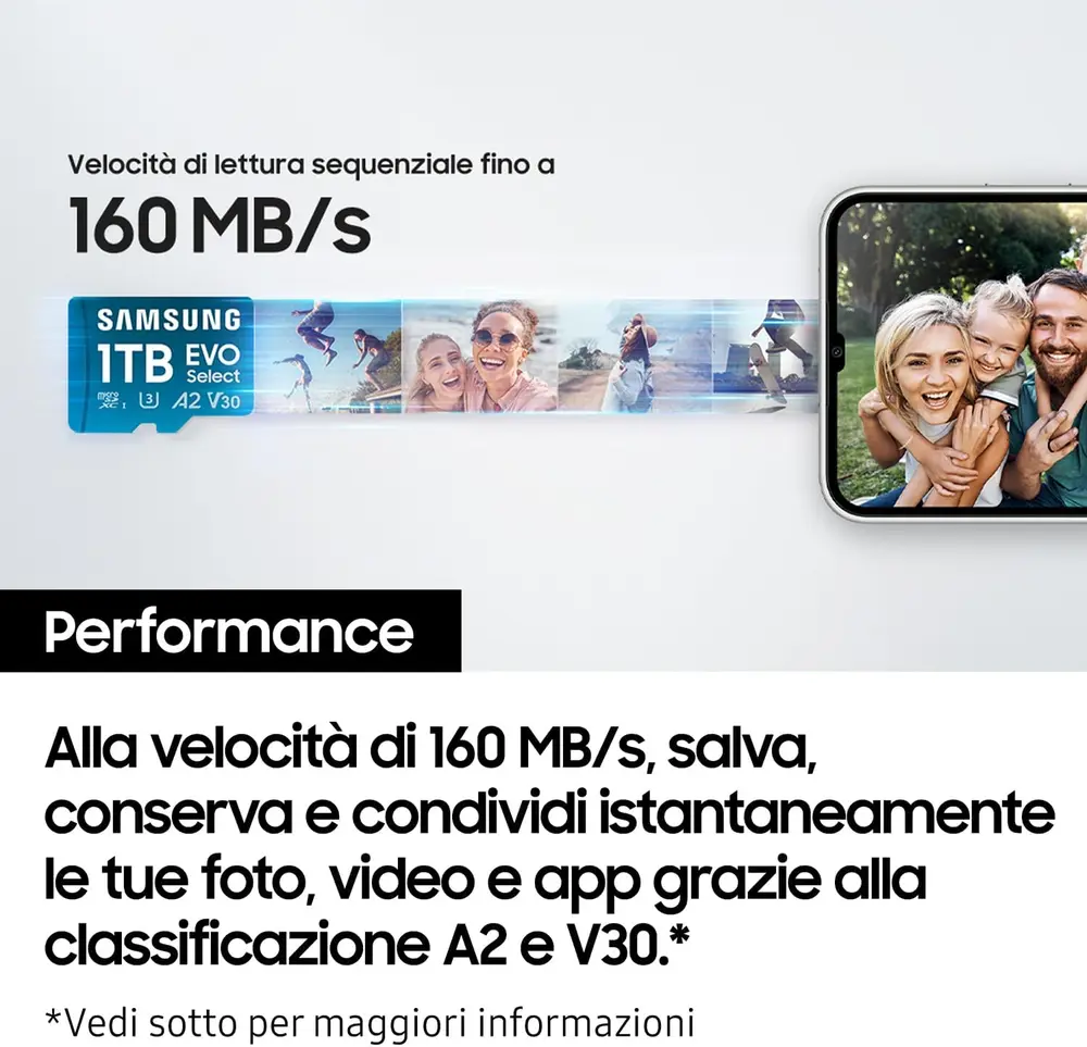 Sia che tu sia un gamer che necessita di installare decine di titoli sulla propria console portatile, o un creatore di contenuti che registra vlog in movimento, la Samsung EVO Select da 1TB offre la combinazione perfetta di affidabilità e velocità. Grazie alla certificazione A2, potrai godere di un’esperienza d’uso fluida anche quando installi le applicazioni direttamente sulla scheda, rendendo il tuo smartphone o tablet ancora più reattivo. Un investimento sicuro per chi cerca il massimo dell’archiviazione in un formato ultra-compatto.