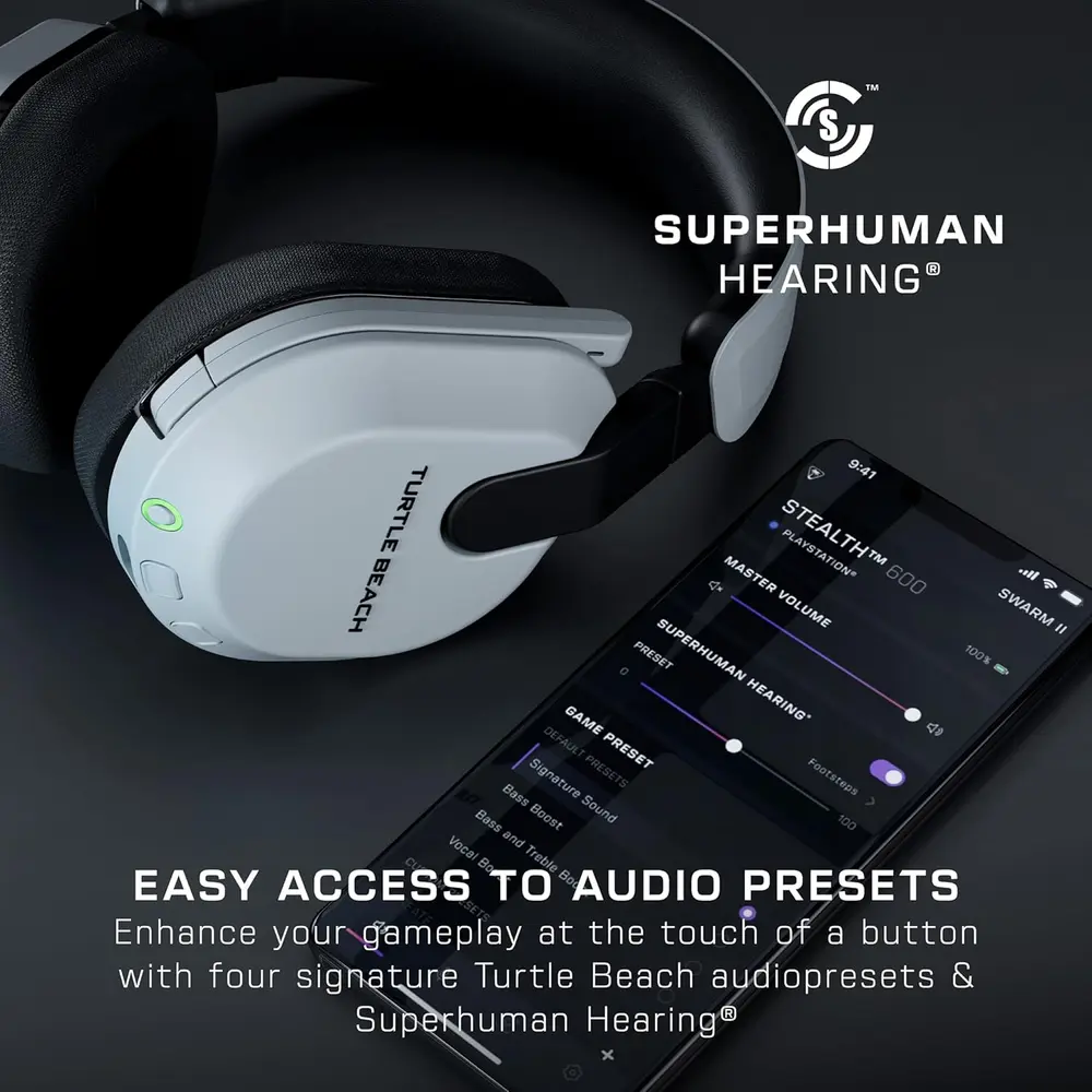 Le Turtle Beach Stealth 600 Bianca offrono un’esperienza audio di livello superiore grazie alla connessione wireless a bassa latenza, al Bluetooth integrato e ai potenti altoparlanti da 50 mm. Con un’autonomia fino a 80 ore, sono progettate per lunghe sessioni di gioco su PS5, PS4, PC e dispositivi mobili, garantendo sempre comfort e qualità sonora eccellente.